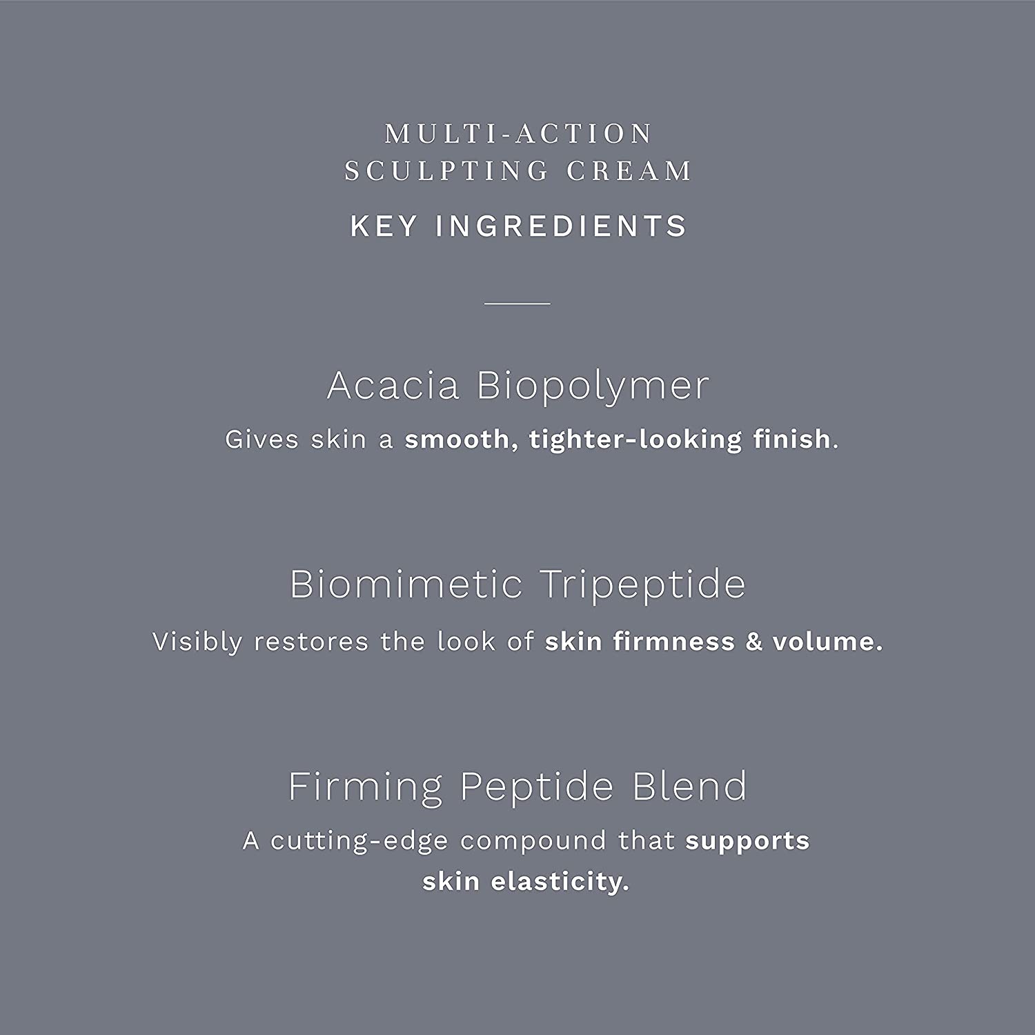 Multi-Action Sculpting Cream works beyond just moisturizing your skin. It’s a luxurious cream designed to help give sagging skin a lifted, tightened, and firmer look. Additionally, this “taut-skin” cream supports your skin’s natural “springiness.” All this adds up to smoother-, tighter-, younger-looking skin.