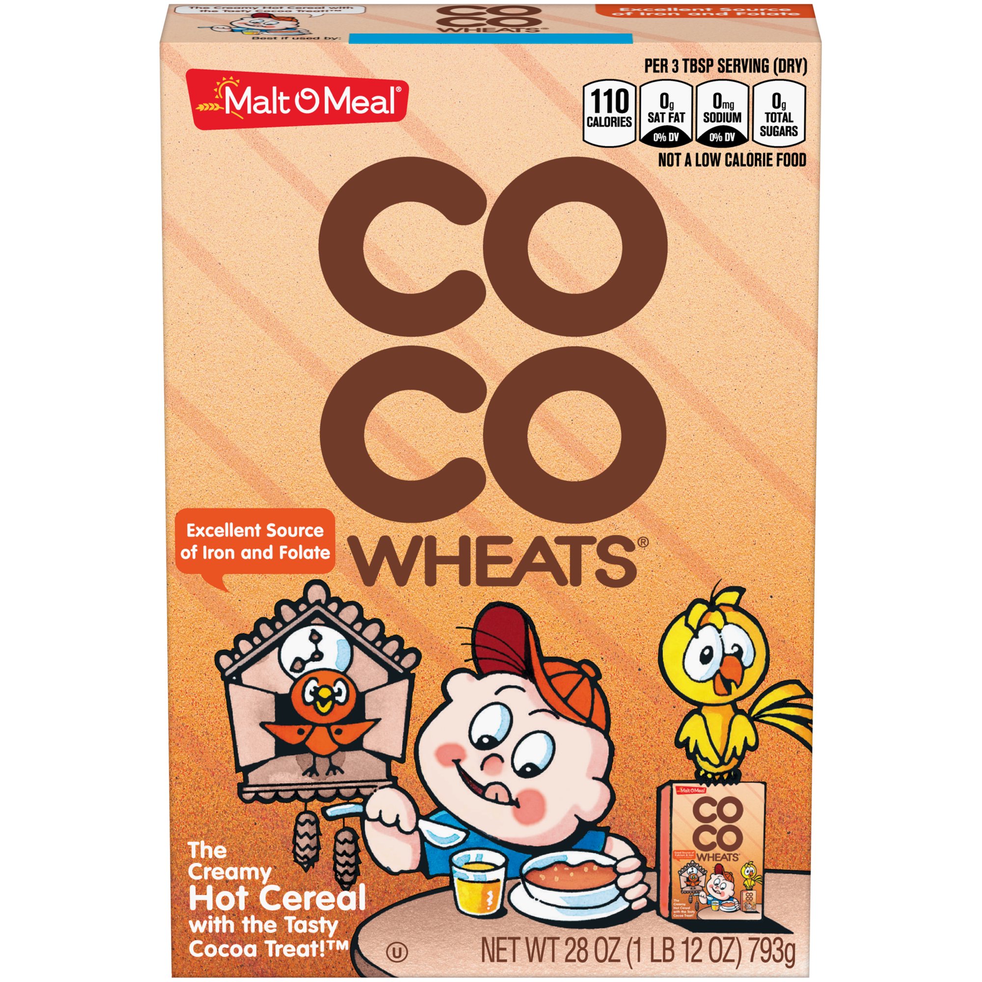 - Malt-O-Meal Coco Wheats® hot wheat cereal is an excellent source of Iron.