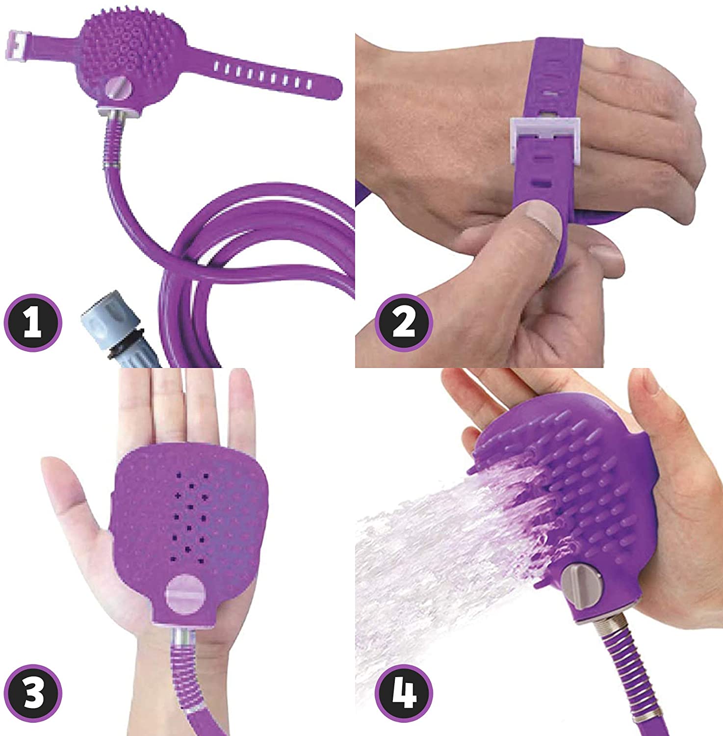 • ADJUSTABLE SHOWER GLOVE: The dog shower sprayer secures onto your arm with a band. Suitable for men or women on either hand, it fits comfortably so you can give your pet a thorough cleaning with this massaging shower glove.