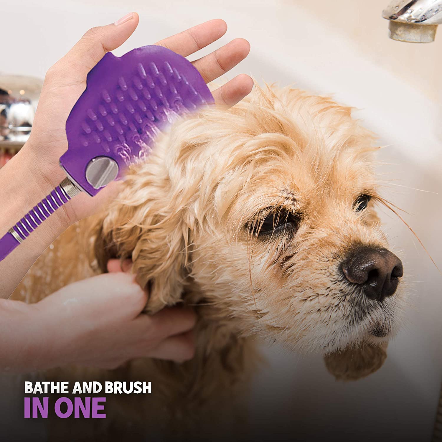 • BATHE AND BRUSH IN ONE: This shower tool has a silicone brush that lets you rub and scrub your pet while streaming with water. Massage the shampoo into the fur and rinse with the dog shower sprayer for a deep cleansing pets love.