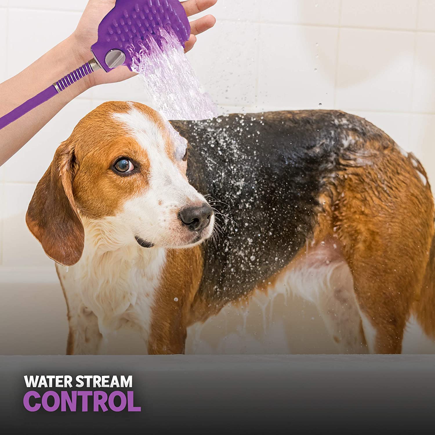• WATER STREAM CONTROL: The shower tool is on your palm so you can guide the water exactly where you want it to go. Spray a lot less water for a smaller mess and a cleaner dog.