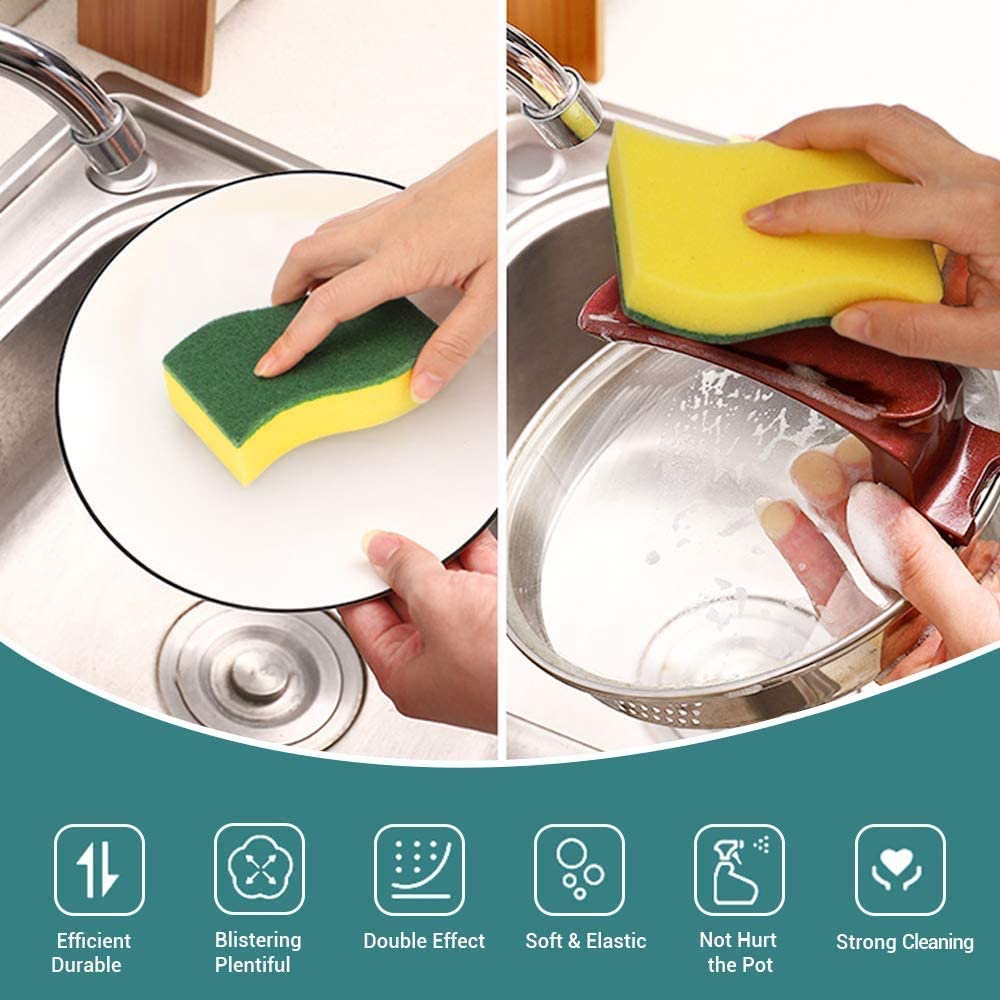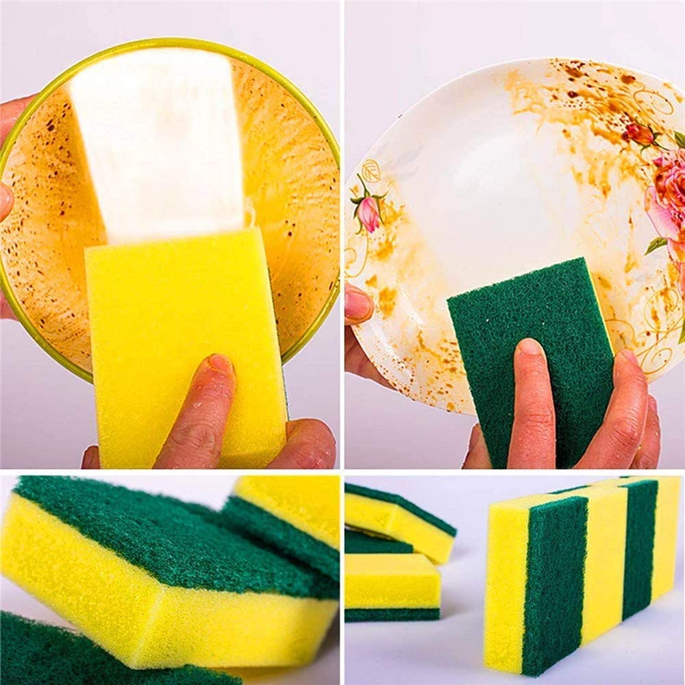 - Long-Lasting & Strong Cleaning: The scouring pad on one side and absorbent sponge on the other for multiple uses. Not easy to tear and wear out even after numerous uses. They last a long time even while scrubbing tough burned food.