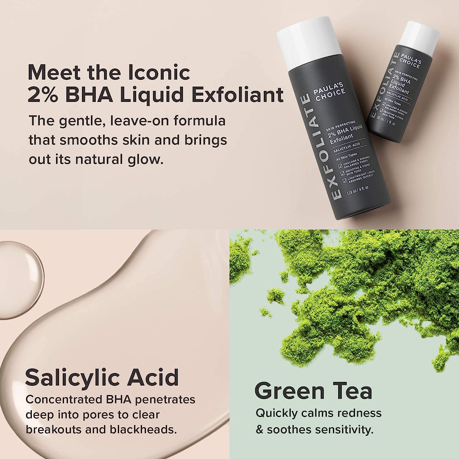 - GENTLE NON-ABRASIVE LEAVE-ON EXFOLIATOR: with 2% BHA (Beta hydroxy acid) to unclog & diminish enlarged pores, exfoliate dead skin cells, smooth wrinkles & brighten & even out skin tone. Combats redness, wrinkles, aging, enlarged pores, & blackheads. PACKAGING MAY VARY.