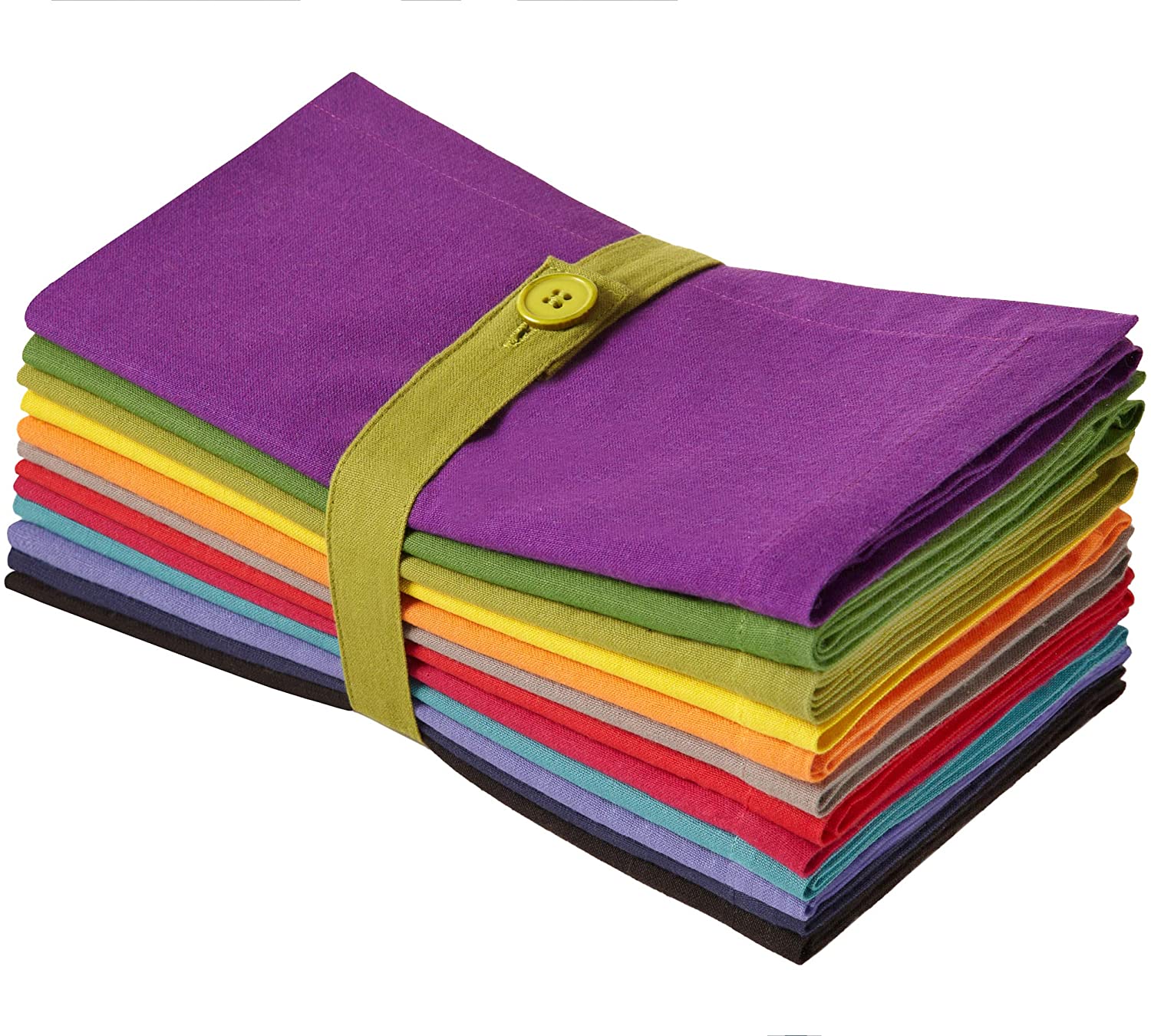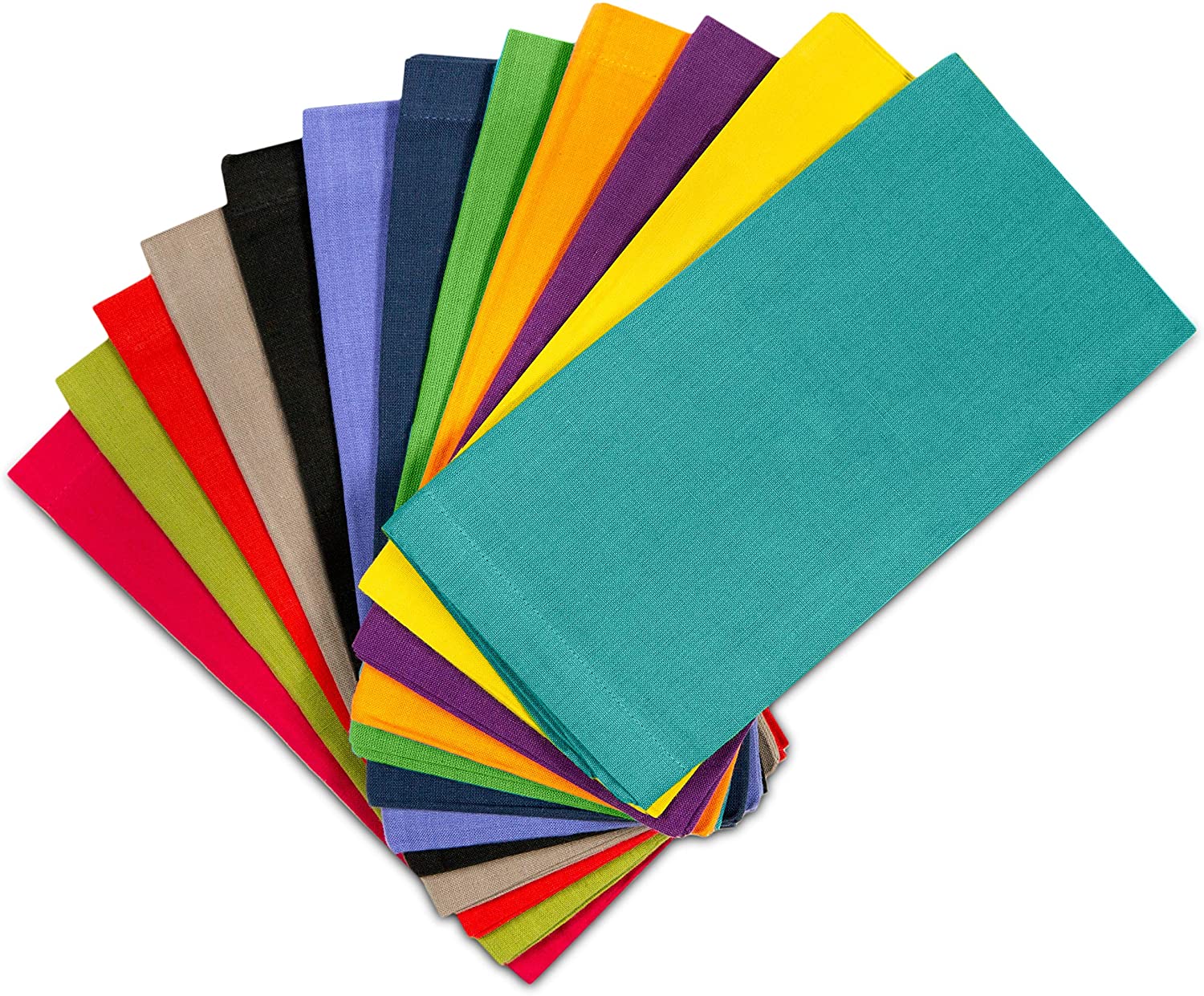 • SET CONTENTS: Each set includes twelve (12) Classic Pure Cotton Dinner Napkins in assorted colors Magenta, Moss , Tomato, Stone, Black, Lavender, Grape, Orange, Teal, Navy, Mustard and Leaf Green, each measuring 20 inches x 20 inches