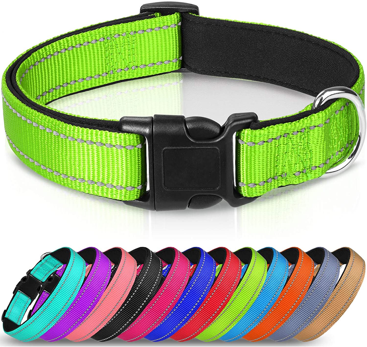 Reflect Dog Collar,12 Colors, Soft Neoprene Padded