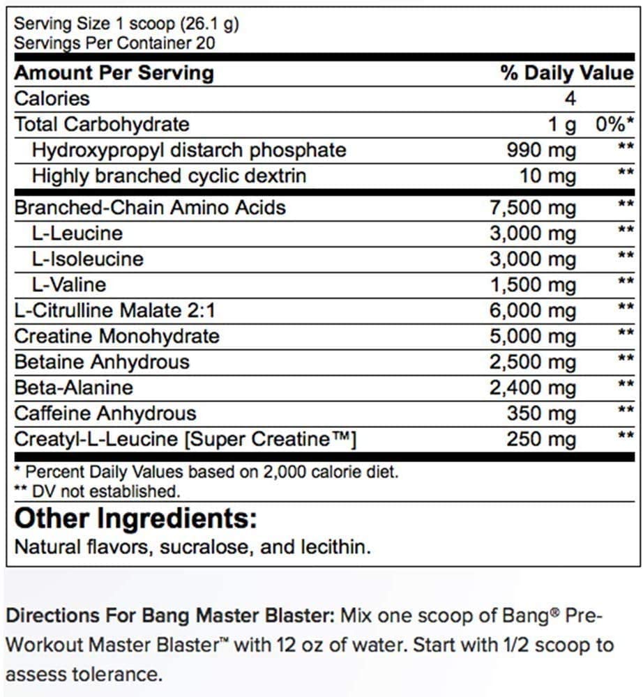 - Strong & Great taste!: All ingredients are fully disclosed on the label because we are proud that Bang Master Blaster is the most potent, best tasting pre-workout supplement in history!